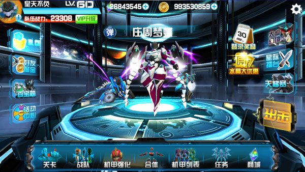 4、在游戏中,机甲共有4个部分可供调整。分别有:机甲升级、武器升级、机甲进化、机甲合体。目前合体功能暂时还没开放。
