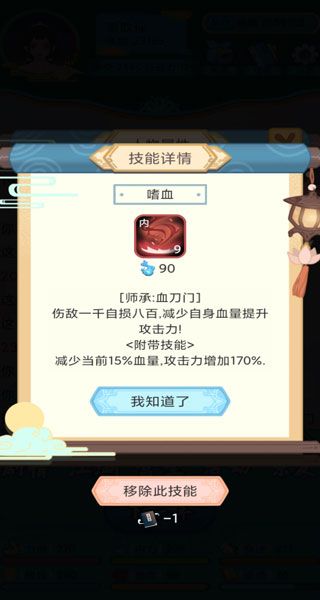 1、如少林掌门戒色,首先,用血刀斩给他挂一个流血效果。