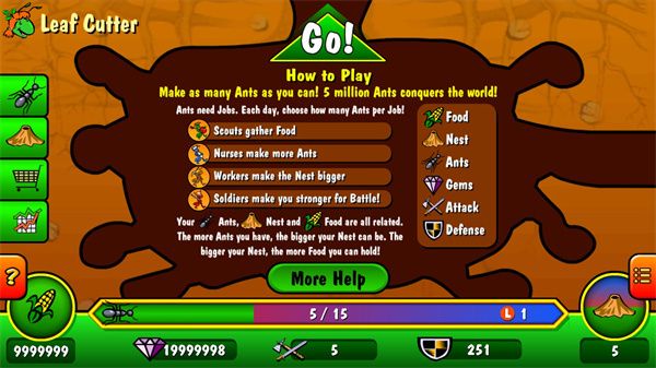 蚂蚁战争模拟器手游最新版是一款以蚂蚁为题材的模拟养成游戏,模拟游戏大多数都是模拟超市、餐馆经营之类的,但是这款游戏并不一样,模拟的是战争。在游戏里玩家需要管理一个小的蚂蚁农场,然后不断发展,构建一个蚂蚁帝国,在这个过程中你会遇到敌人的入侵,你需要升级训练自己蚂蚁士兵的技能击败敌人守护自己的家园,不断的扩大自己的蚂蚁巢,从而来获得更多的食物。并且在蚂蚁战争游戏中有四种不同的蚂蚁,每一种蚂蚁的分工不一样,玩家需要好好利用哦!不仅如此,游戏最有趣的一个地方在于可以观看地上和地下场景,在地下场景可以扩展地盘,繁殖蚂蚁,在地上场景可以收集食物同时攻击敌人,对手速的要求还是有一点的。另外,不要看游戏体积小,但画面表现的蚂蚁和各种战斗装置还是十分清晰、逼真的,游戏卡片的图片绘制也十分精美,背景音乐的节奏也很不错,给人一种置身昆虫世界的感觉,整体表现得很有特色。