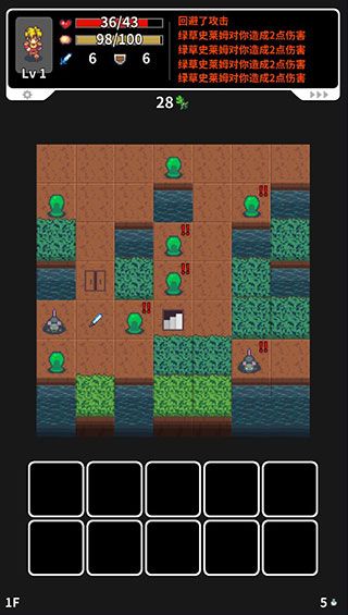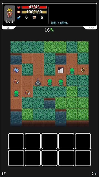 2、游戏玩法简单,玩家通过点击草丛,拾取各种出现的道具,打败怪物,找到走向下一层的通关之路,探索这个地下迷宫;