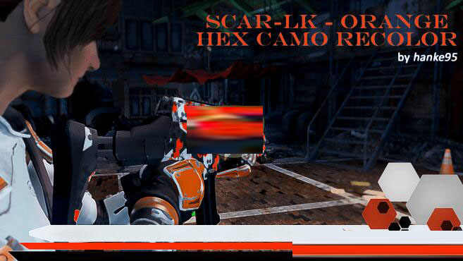 辐射4SCAR-LK突击步枪橙色迷彩MOD针对另一款武器mod的颜色进行了单独的着色,改为了橙色迷彩的外观,看起来就像是从某个游戏开箱得到的一样,相当不错,喜欢的话,就来下载吧!