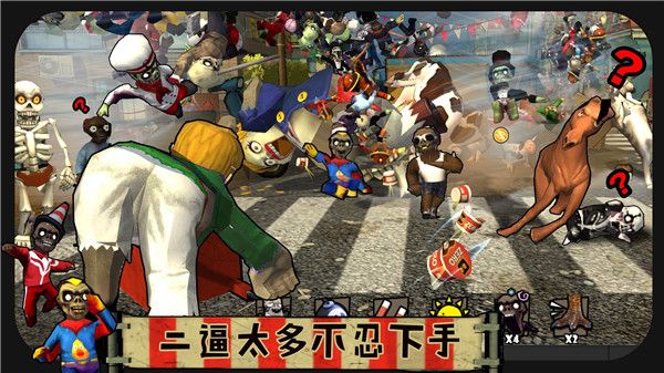 3、游戏操作非常的简单直接,看到有各种奇怪形态的僵尸移动过来了。