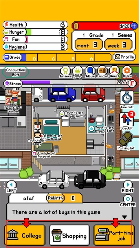 独自生活手游正版是一款像素风格的模拟经营养成类游戏,游戏中玩家将会模拟一个初入大学的学生,远赴家乡,被艰难的生活所迫,你要一个人生活下去,想尽办法赚很多的钱,尽最大的努力让自己的生活变得越来越好,所有的困难都将要自己一个人去面对,你会放弃吗?因为你永远不知道生活会给你出什么样的难题,带来什么样的困难,让你陷入什么样的困境,你只有不断的去解决一个又一个麻烦,才能让自己过的更好一点。