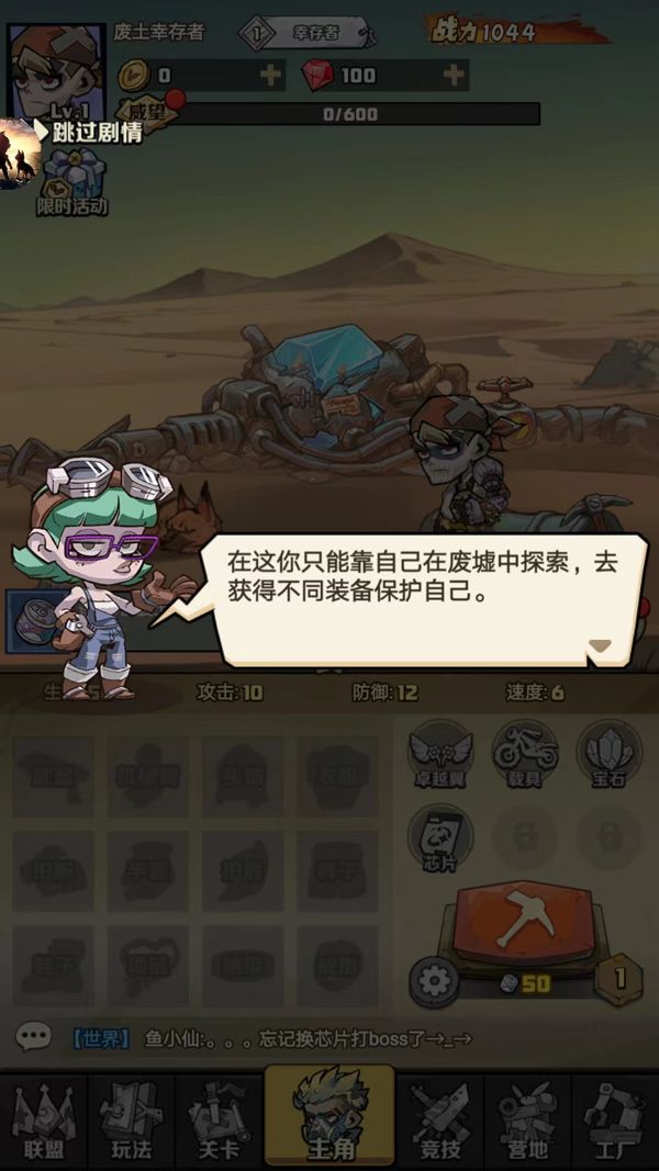 1、打开卓越之翼手机版,选择【传送废土】选项,