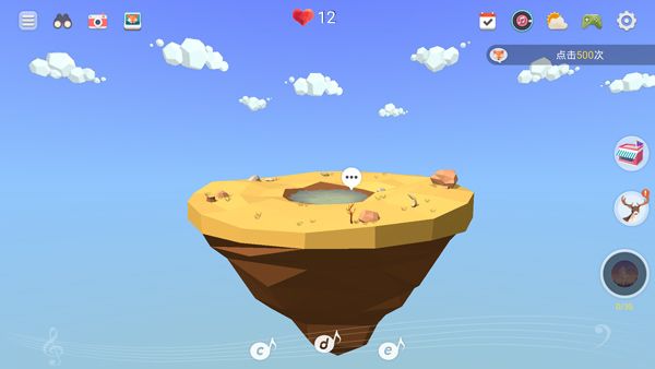 主要目的就是玩家为了沙漠成长到绿洲的游戏。虽然玩法比较简单,但是游戏中玩家可以看到美丽的音乐,画质精美每场不同的一片绿洲天空岛。特别是,游戏中玩家看到的 “温暖人心的安慰之语”“心灵的歌声BGM”等给玩家带来舒服,温暖人心情的感觉。