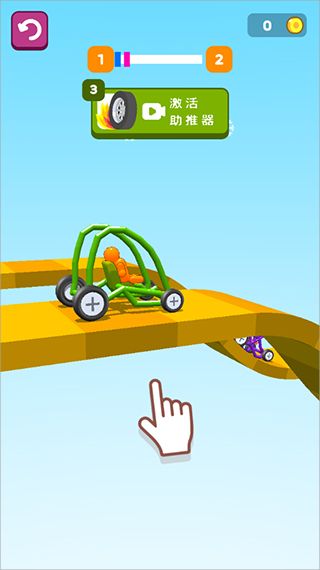 4、开始游戏后点击屏幕开始加速,如果车子翻倒,你不用担心一直点击屏幕加速车子还是能够前进,想赢得比赛必须将车子合理的组成。