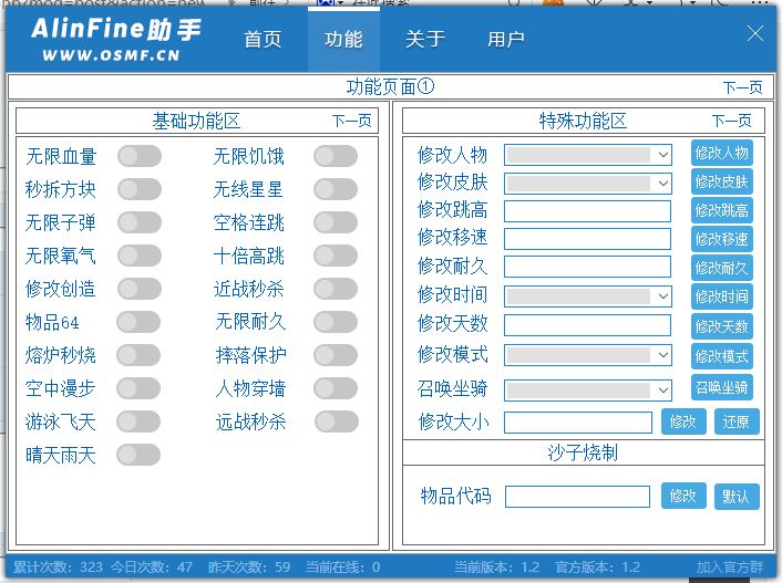 AlinFine Mini助手是为各位迷你世界玩家们制作的辅助工具,该款迷你世界游戏助手集合了一系列的实用功能与一身,像大家喜爱的无限血量、无限延期、掉了保护、远战秒杀等等功能这款助手全部拥有,特殊功能区域内还提供众多游戏属性的修改功能,可以让您体验不一样的迷你世界游戏。