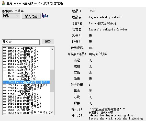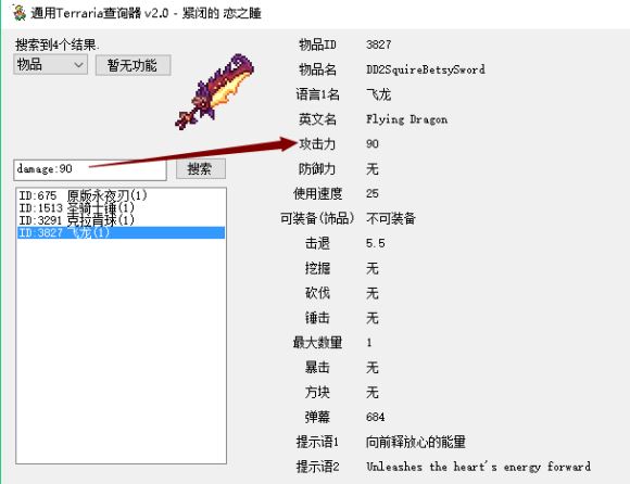 泰拉瑞亚物品百科工具可以查询游戏中物品的信息,包括物品名、描述、ID、攻击力等各种属性,还能通过关键词查询,不管是名称中的关键词还是描述中的关键词。
