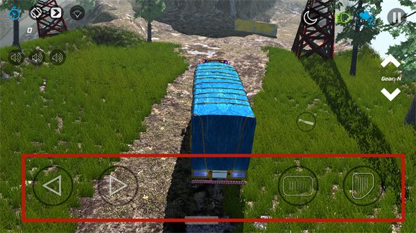 6、接下来小编以最常见的按钮操作为例,简单为各位小伙伴介绍一下操作方法。玩家可以通过下方的操作键控制车辆的前进方向,同时支持换不同的档位来完成倒车等操作,更多的玩法玩家可以进入游戏后自行探索哦!