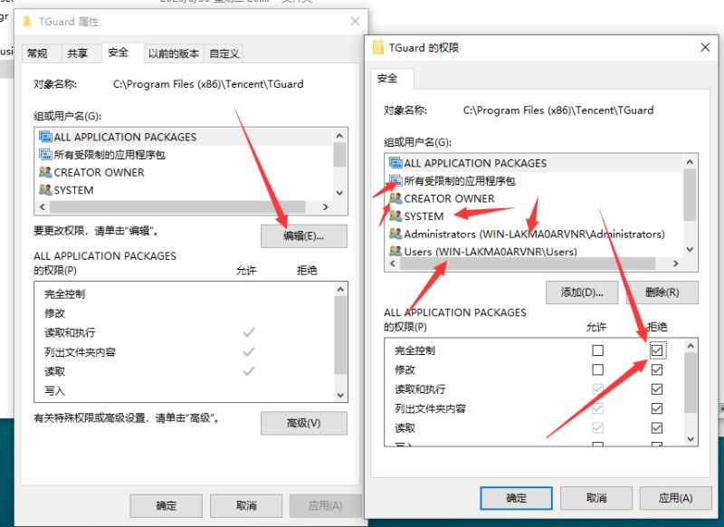 5:在找到 TGuard 文件,右键 属性 把权限全部禁掉即可
