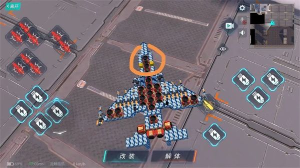 机动部件。作为一架战斗机,各种机动动作必不可少,这两个大力神和它们对面的两个大力神就是为了做机动动作而出现的。当你想要向左边倾斜时,就喷射右边的大力神,反之亦然。注意该部件尽量与垂直升降大力神保持在同一水平线上,否则倾斜时产生的分力会导致你的飞机严重失衡。 滚筒和快速转向就依赖这个系统,同样的,倾斜必定产生分力,如果朝右倾斜了,飞机就会产生向下和水平向左的推力,把你的飞机平移出去,如果向左,那么你的飞机就可以向左平移。如果你想要快速转向,那么就可以先倾斜到九十度,然后快速打开抬头大力神,此时抬头大力神由于飞机呈九十度倾斜导致是水平喷射,所以会把机头快速向你的倾斜方向移动,移动到你想要的位置再关闭抬头,按相反方向的倾斜按钮即可复位。 利用该系统,你可以在空中滚筒和做出一系列战术机动,现在我没有发现该系统无法完成的战术机动动作。