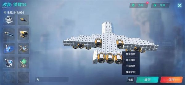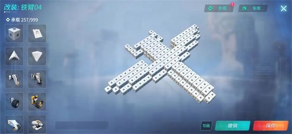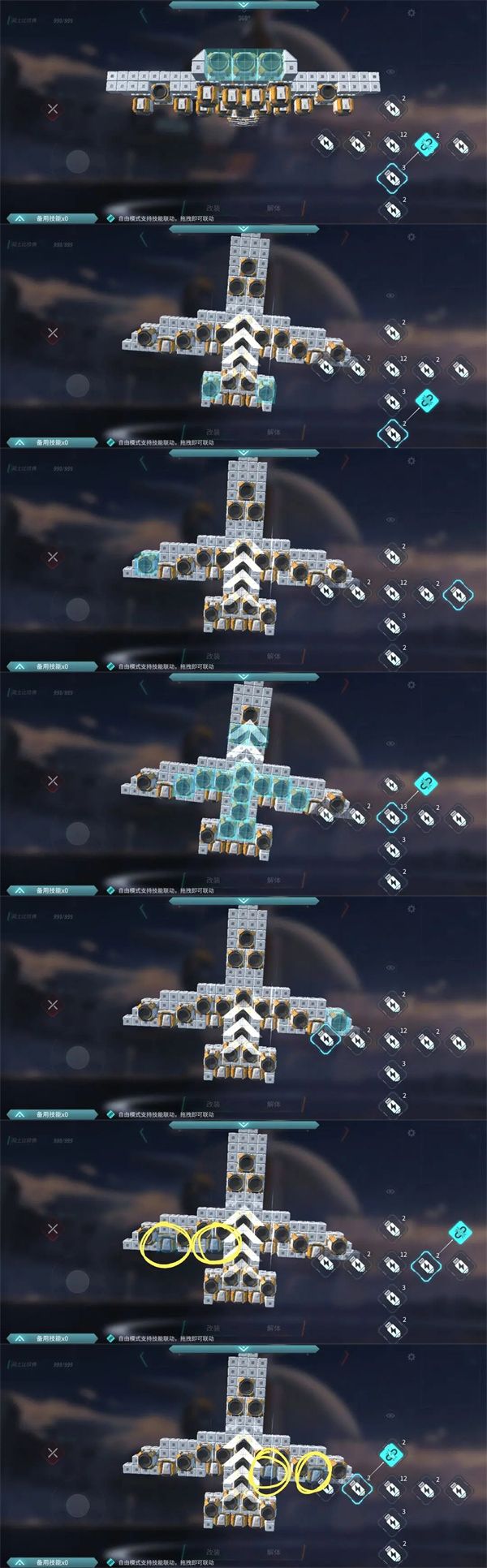 学会平衡。平衡并不是一开始就行的,当你做完了壳子和其他设施时才开始调整平衡。平衡大致为前倾的话就让你的垂直升降的大力神往前放一格,但是不要所有大力神都移动,只要移动一个就好了,如果还是前倾,那就再找一个往前移一格,如此往复直到平衡。往后倾斜也是这种方法,切记不要盲目增加大力神,否则只会让你的战机越来越差劲。 如果你是左右不平衡,那肯定是你哪里多了方块或者是两边的长度不一样,方块位置不一样,就会导致重心不稳。