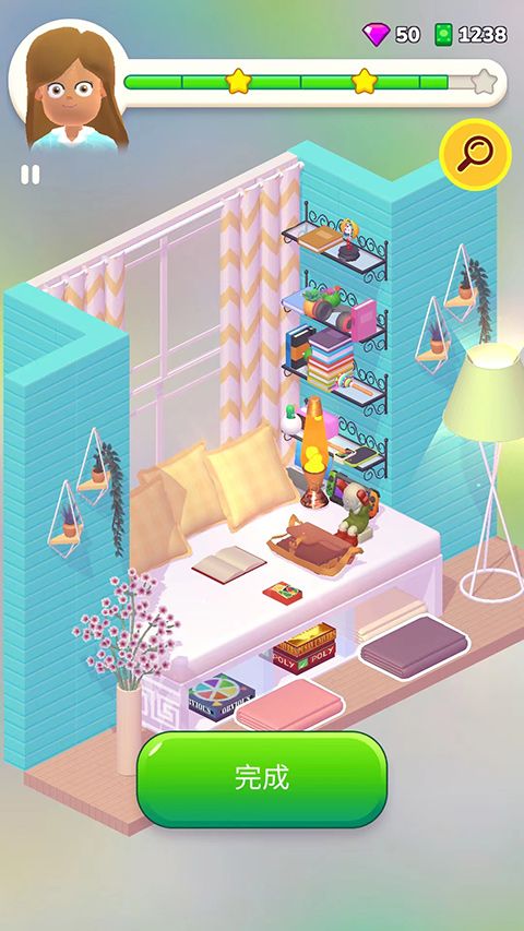 2、每一次关卡挑战完成,都能获得大量的钻石奖励,钻石可以解锁更多实用的家具。