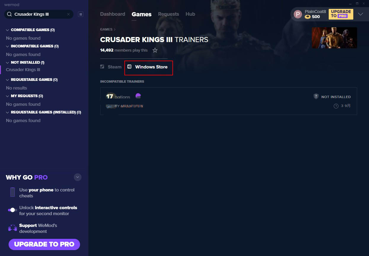 2、双击exe文件安装WeMod,如果已经安装直接搜索游戏英文名使用;