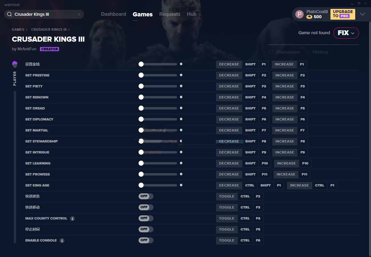 十字军之王3十七项修改器 v1.3.0 MrAntiFun版 适用Windows