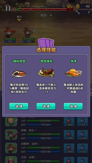 4、每次击败敌人时,您都可以从3种随机技能中选择一种,这样您的英雄将变得越来越强大。