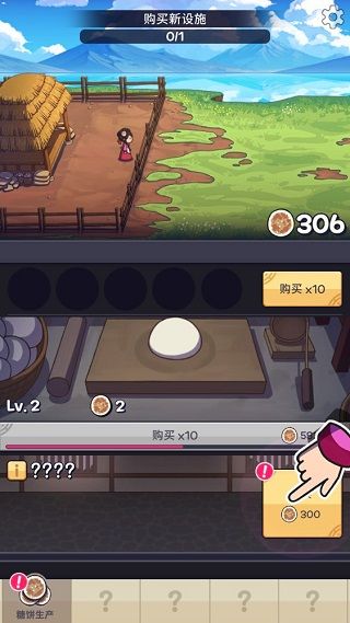 2、完成目标任务,即可解锁设施,如图所示,点击“购买”就能雇佣劳力,每秒制作的糖饼可以减少玩家的戳屏次数,后续收集更多糖饼,还能解锁更加高级的设施,享受放置挂机的经营乐趣。