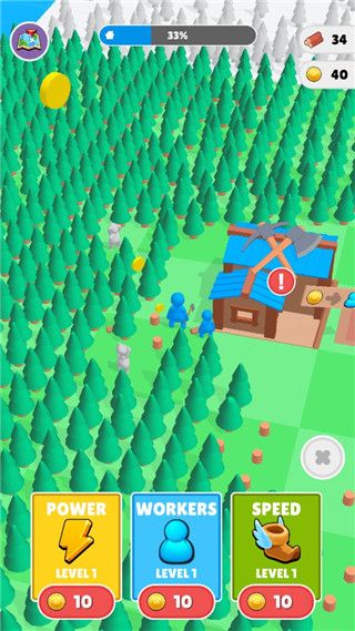 4、还可以增加移动速度、成员等,帮助玩家更快速的进行砍伐,然后建造房屋;