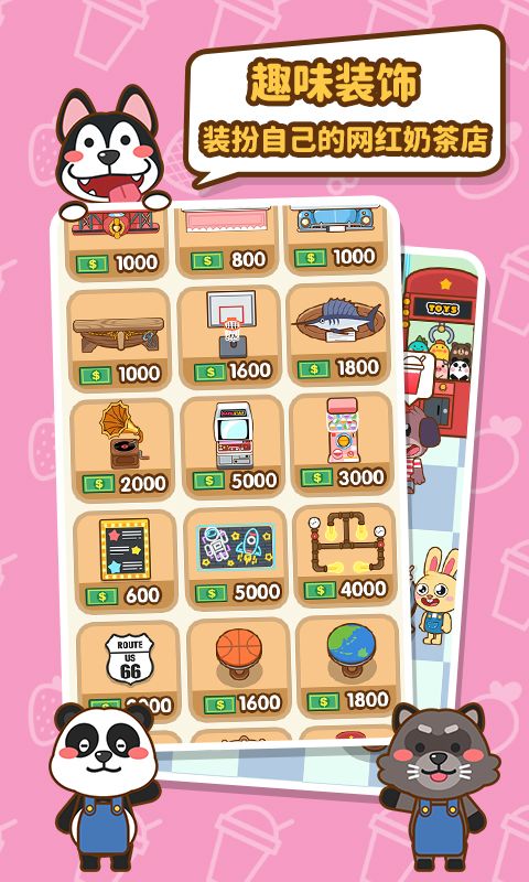 你现在拥有了属于自己的奶茶店,你将体验到接受订单,遇到形形色色的顾客,制作奶茶,赚取金钱,装扮店铺的乐趣!