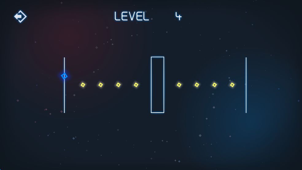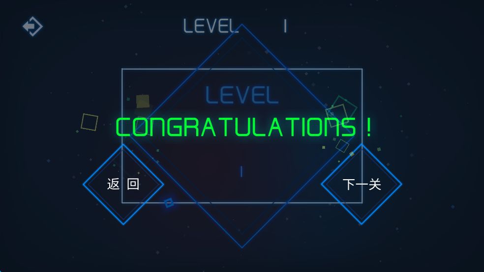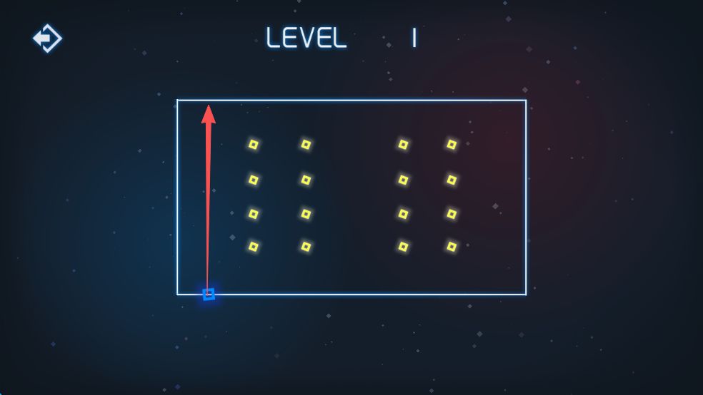 4、需要注意的是,个别白线并不会相互配对,下图中,中间长方形的上下两白线,将会向外的“虚空”跳去,这就会导致蓝色正方形消失,游戏也将结束。
