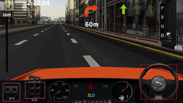 3、旋转右侧的方向盘可以控制车辆方向,点击左侧的按键可以控制车辆刹车、加速。