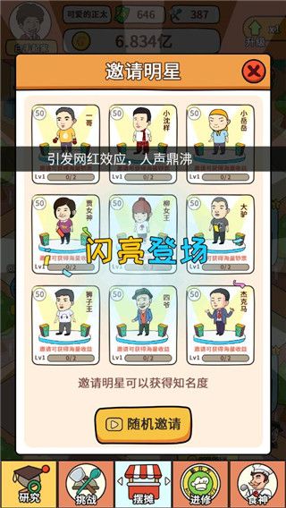 5、另外,游戏中还提供了超多的明星等你来招募,并让其代言增加知名度哦