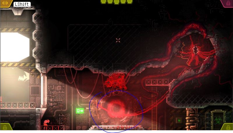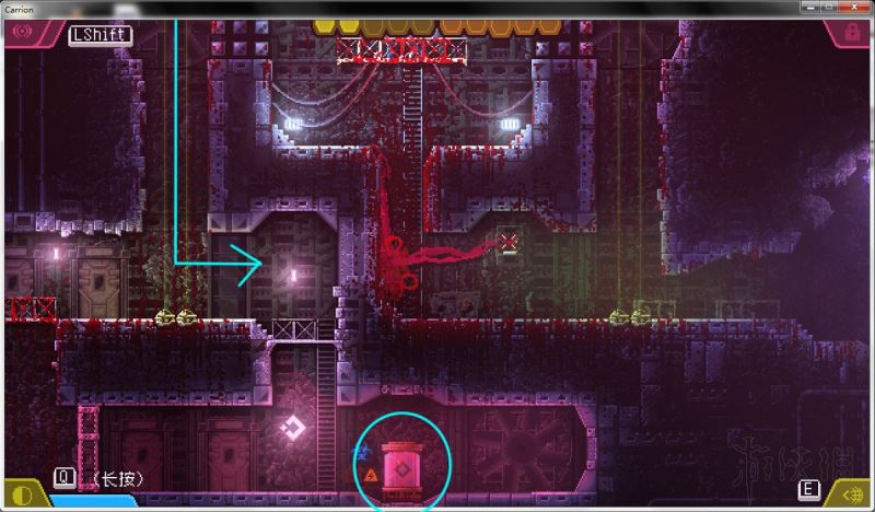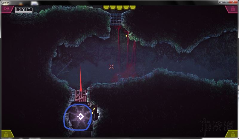 2、进入下一个房间,移开笼子后向左移动;此处风扇有发光符号,道路被木头挡住(需特定能力才能破坏),暂忽略收容单元房间。
