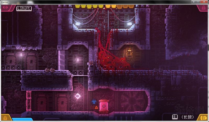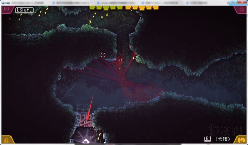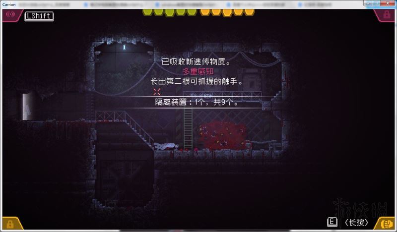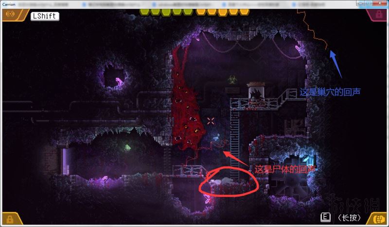回声定位作用:按左SHIFT发出吼叫,声波碰到可食用的尸体会反射回来(反射的颜色是红色)