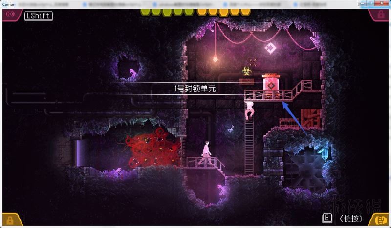 进去之后走右边那个红灯门,左边是拿到隐藏遗传物质后离开的路。
