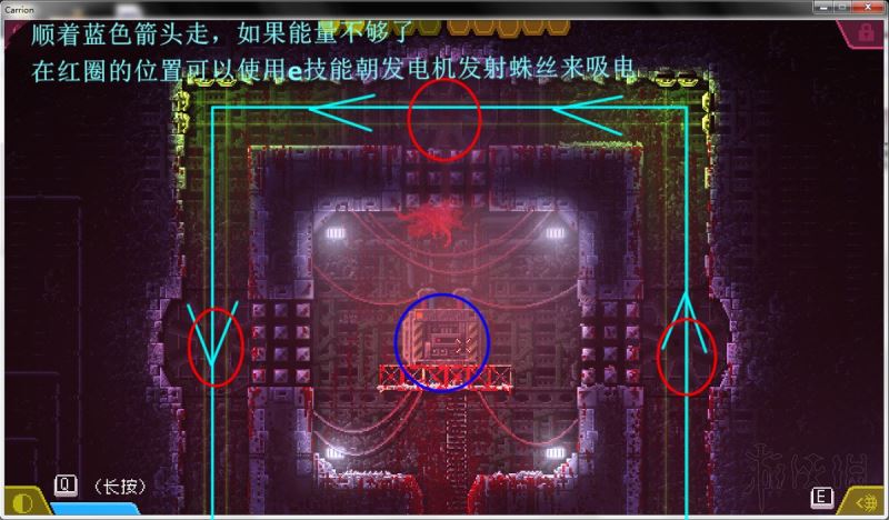 最右边就是隐藏遗传物质的通道,进入通道需要:刀状突刺技能和趋水性蠕虫技能。