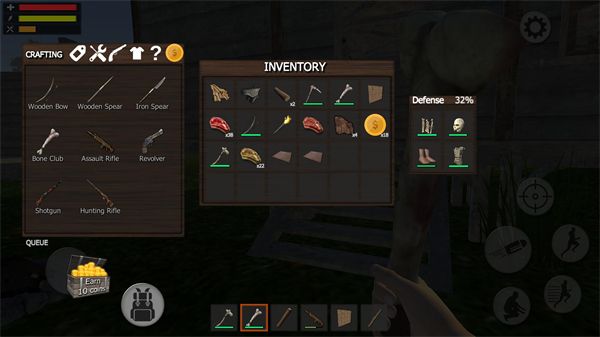 3、可以收集资源,制作各种工具,包括弓箭、篝火、栅栏等防御措施。