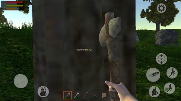 3、游戏的操作很简单,只要在物品栏选中想要使用的工具,再点击右侧的巴掌按钮即可进行各种劈、砍等操作。