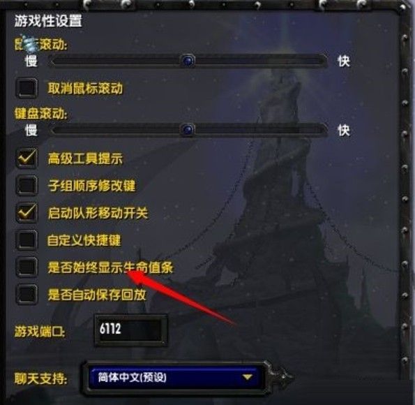 3、勾选【是否始终显示生命值条】的选项,点击【确定】
