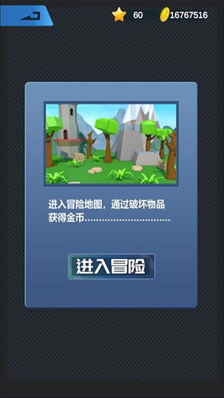 9、选择最下方的游戏之后,我们就进入冒险玩法了,进入冒险地图,通过破坏物品来获得金币。