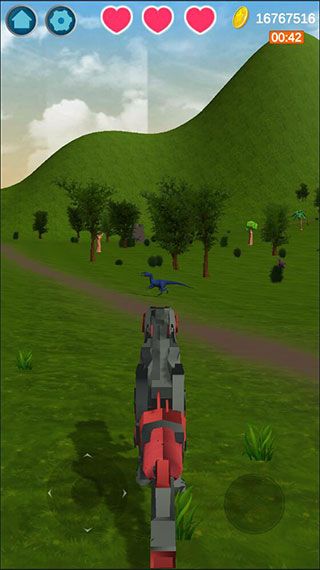 10、玩家通过虚拟摇杆和按键来控制恐龙,左边是移动,右边是攻击,最上方的红心是恐龙的生命值。