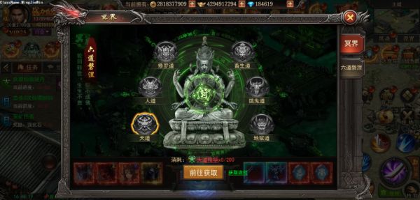当冥界开放后,需要先打破冥界封锁结界才可以通过“冥界之门”进入冥界。打破材料为“六道精华”,可通过“六道磐涅”副本击杀BOSS掉落