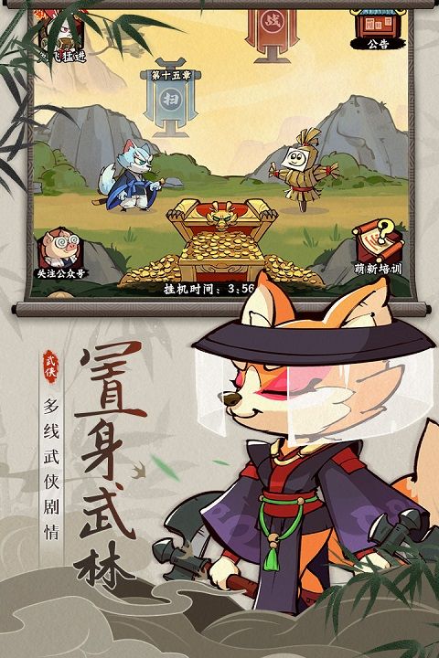 调皮小动物手游是一款武学搭配的放置轻度策略游戏,融合了多种玩法,放置挂机、英雄养成、秘籍修炼、装备养成、策略搭配、宗门玩法、VIP养成等,众多玩法聚集,总有您喜欢的。游戏中有丰富的秘籍玩法,64本武功绝学,5种品质,14大门派,10大职业;职业进阶,相互羁绊,属性暴增。任意组合门派,职业,可搭配出不同的武学秘技。