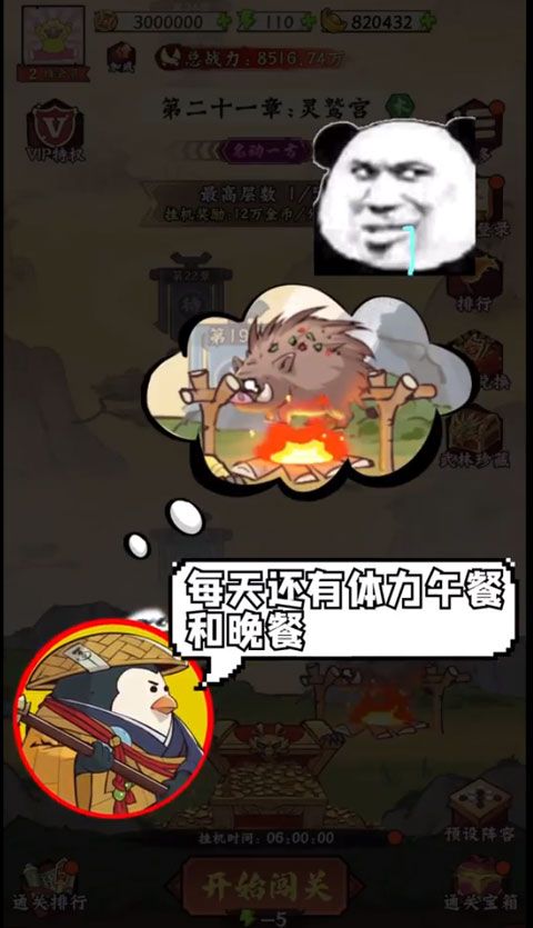 1、首先体力作为主线闯关必须的消耗品,不仅可以随时间恢复,每天还有体力午餐和晚餐,可以大补一顿。