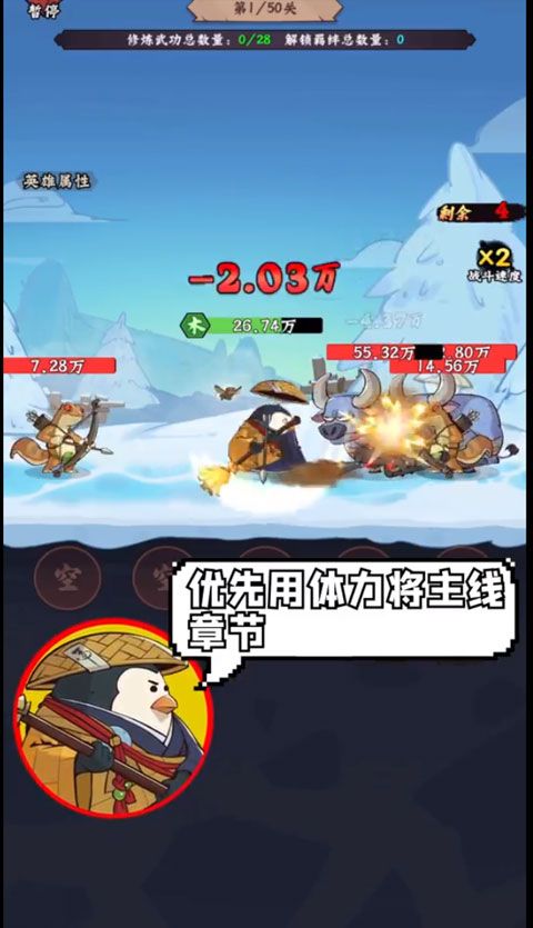 2、优先用体力将主线章节,推进到打不过的章节后。