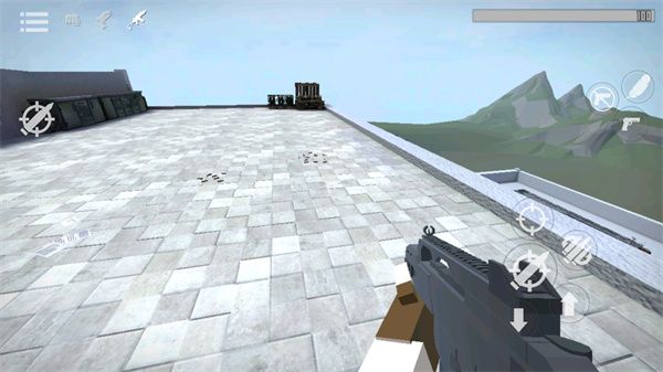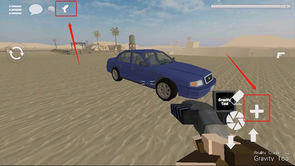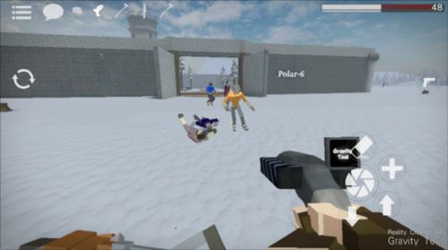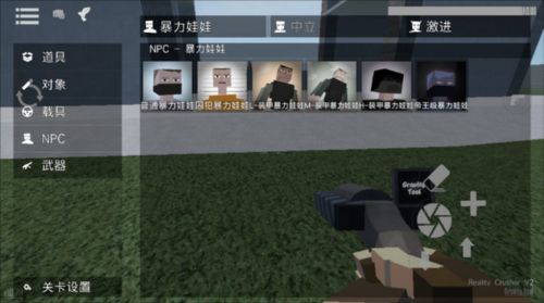 1、打开G沙盒,想要拿枪就必须先找到一把枪,找到枪后需要将准心放到枪上,这时屏幕左边会出现一个手指按钮,按住手指按钮即可拾取;