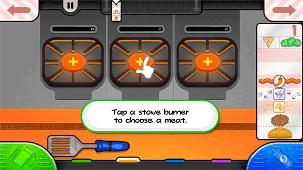 游戏最初需要玩家掌握做卷饼的流程,无论是记录下顾客的点单内容,还是根据肉饼的颜色反应来决定是否出锅进行搭配制作,这一切都完美的还原了现实制作卷饼的过程,而且每个顾客都拥有着不同的需求和喜好,又快又好的制作好卷饼才能赚取到更多的小费,并得到高分。