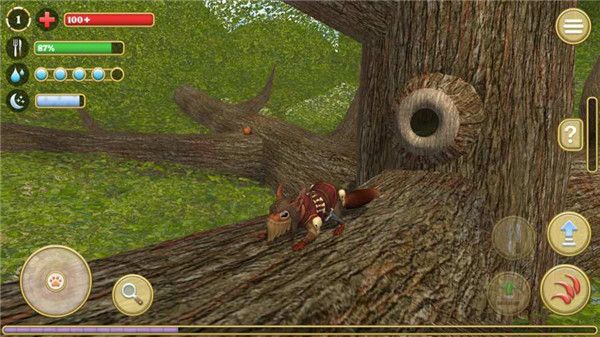 松鼠模拟器官方版是一款画面精美,玩法趣味的模拟生存游戏。游戏以模拟松鼠生存为主,既然是模拟游戏那当然要最大化的还原一个真实的世界,游戏采用3D画面制作,画面十分逼真细腻,玩家在将化身一只可爱Q萌的松鼠在郁郁葱葱的森林生活,在这片森林里没有城市的喧嚣,有的只是一望无际的宁静和安详,你在这里只需要解决自己的温饱,找到松果、蘑菇等其他食物来填饱肚子,在树上找到一个温暖的小窝。虽然这里没有人类世界的复杂,不过有的地方还是要要注意的,不是什么食物都是可以吃的,越好的越吸引人的反而是最有害的,就拿蘑菇来说,颜色越鲜艳毒性越大,你觅食的时候可要注意了,还有森林里不只是有松鼠,你要小心其他动物的攻击。