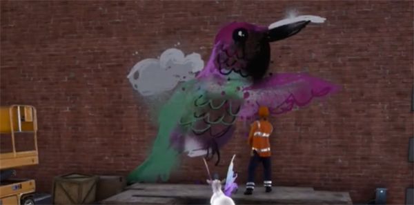 答:用咩克斯在三幅壁画上喷漆。