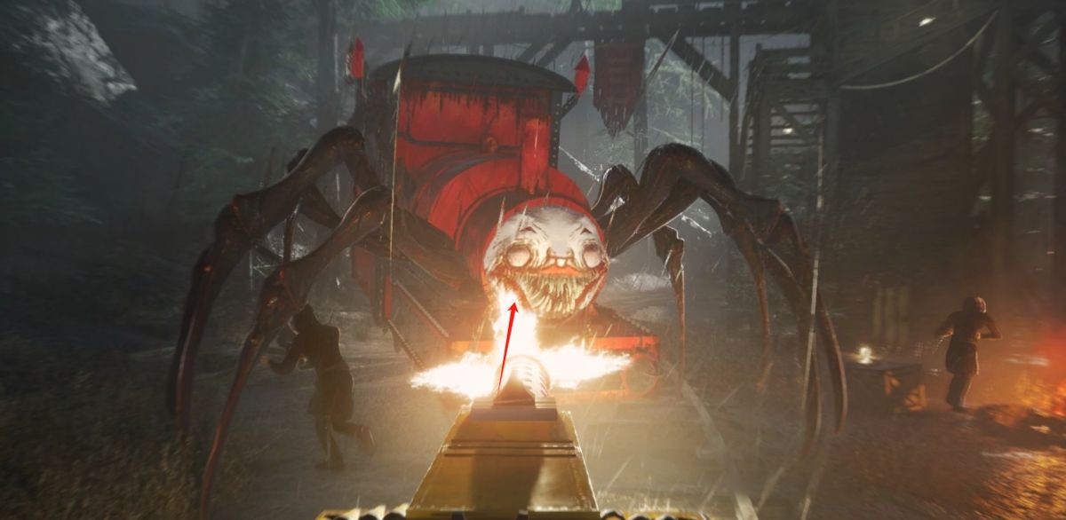 5、使用武器对准怪物火车,展开射击,击中后Boss血量就会减少;