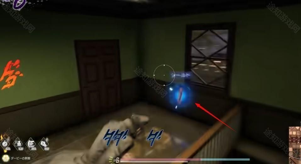 通过散布在地图上的物品的存在来鼓励玩家探索地图。三种类型的卡片隐藏在整个地图中,可以捡起给玩家带来优势。红牌捡起时会治疗玩家的生命值;蓝色卡片给玩家一个吸收伤害的盾牌。绿卡是让玩家暂时看穿墙壁的诡计卡。任何动作,从步行到攻击,都会产生噪音,通过片假名拟声词在画面上显示出来,让其他玩家看到附近发生的事情。但是,可以在蹲下前进来达到偷偷摸摸的效果。