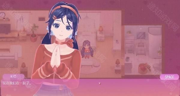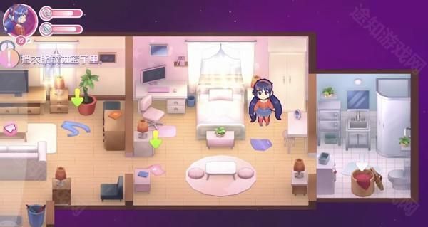 一个扎着双马尾、笑容甜美的3D小人美少女开开心心地朝你打招呼,然后露出羞涩的笑容,问你可以帮她收拾房间吗?
