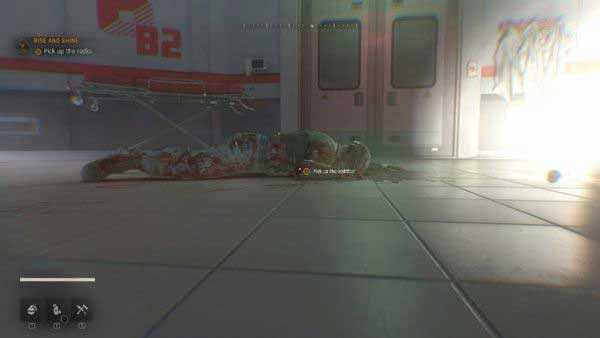 这是一个快速简单的步骤。爬向尸体并进行调查以获取无线电。另一头的声音会帮助你逃脱。