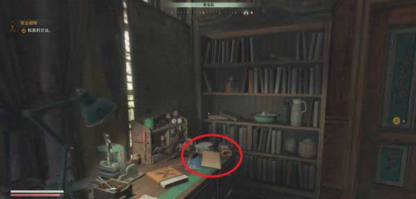 前往位于床右边的工作台,拾取战利品和初学者手册页。