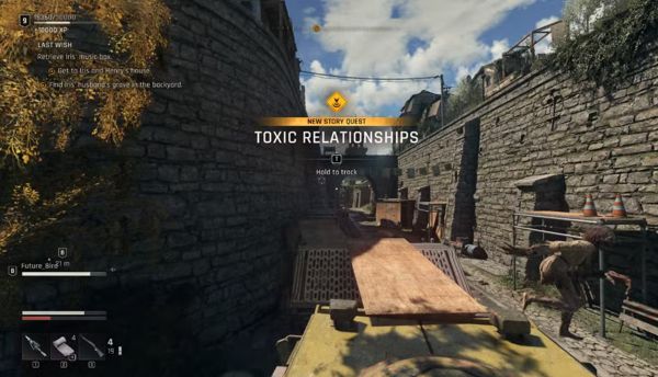 任务的第一步是前往会合点与奥莉薇亚碰头,她正在一辆车里等候。路程相对较远,但利用在城镇郊外可以找到的车辆,抵达目的地应该不成问题。
