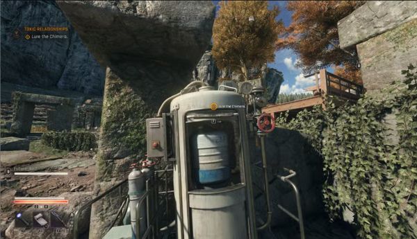 激活Boss的流程与之前【新的毒株】任务中对战巨兽怪类似:当克兰发现一个熟悉的装置后,游戏会提示我们寻找一个汽油罐,用于将奇美拉引诱出来。